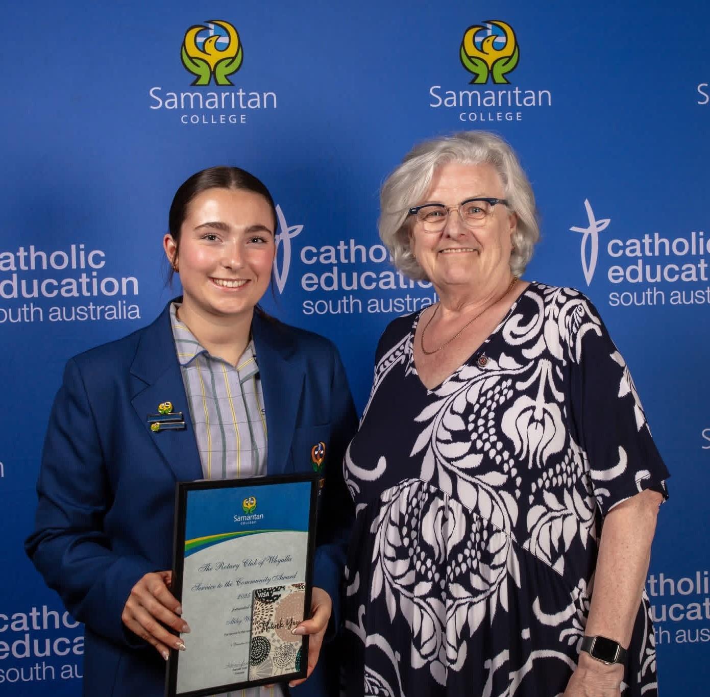 - Samaritan College: The award was presented to Miley Wilson, honouring her dedication and service. Past District Governor Jane Owens had the privilege of attending the ceremony.